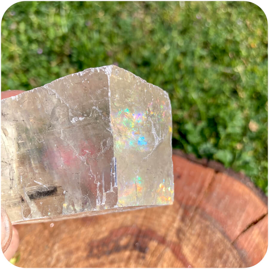 Cristalul este uimitor de frumos, cu o suprafață reflectorizantă, iar curcubeele interioare pot fi adesea văzute în interior. 🌈