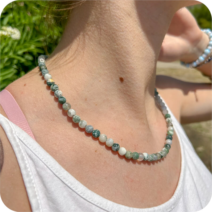 Colier cu Agat Copac și Mușchi pentru Stabilitate și Legătură cu Natura