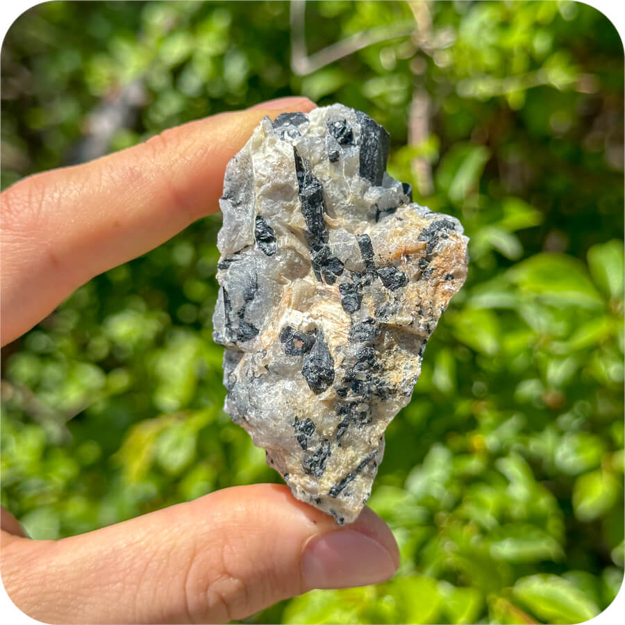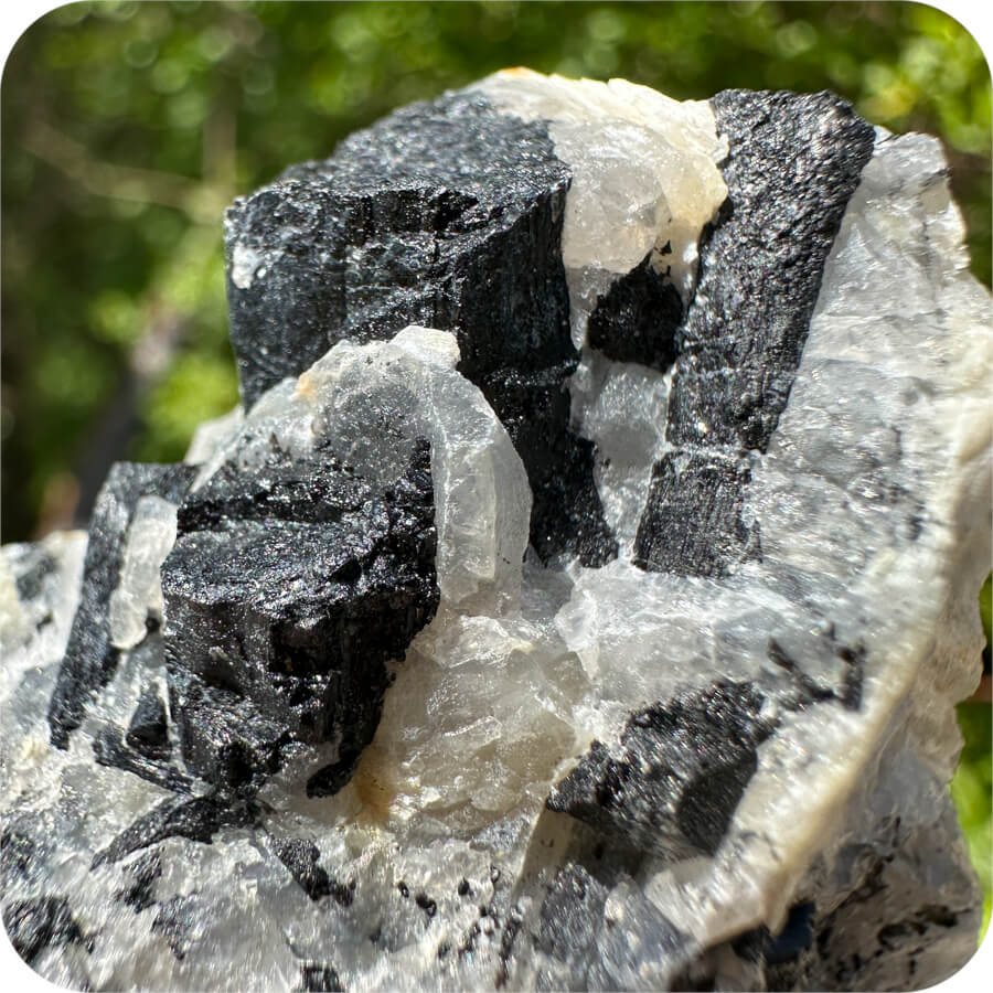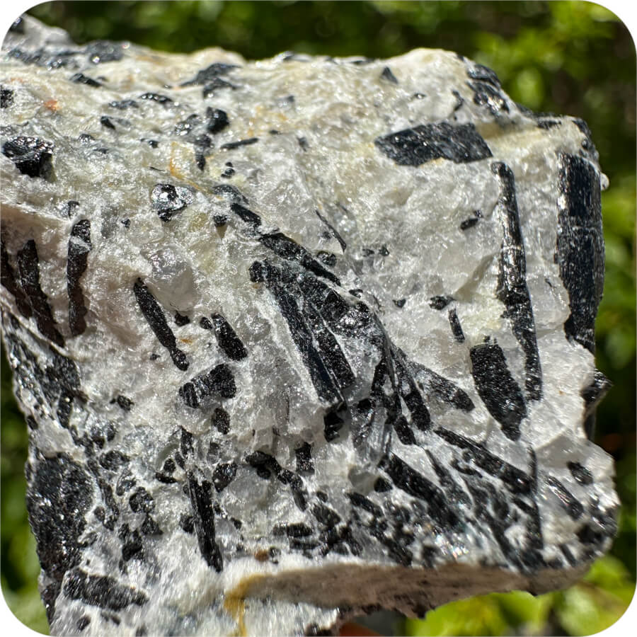 Cuarțul cu turmalină se formează atunci când cristale aciculare de turmalină neagră (numită și schorl) sunt „capturate” în masa de cuarț. Rezultatul este un peisaj natural unic – ca o reflexie a cerului nopții într-un lac de munte. Fiecare piesă este diferită și poartă propria sa poveste energetică 📖