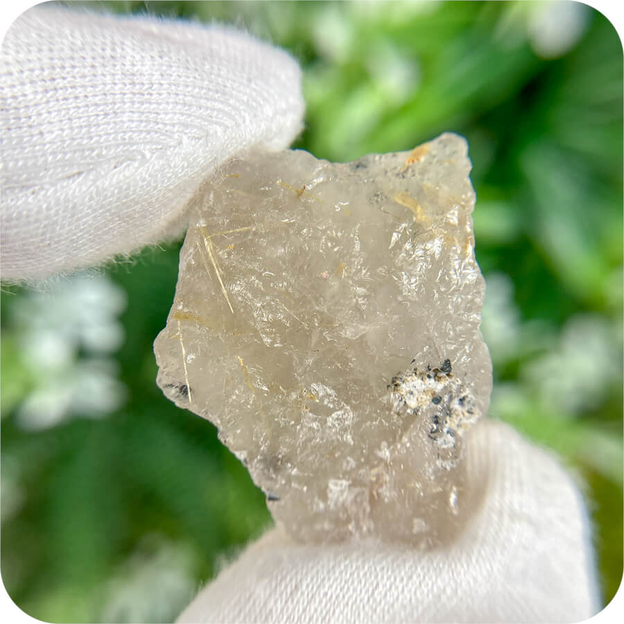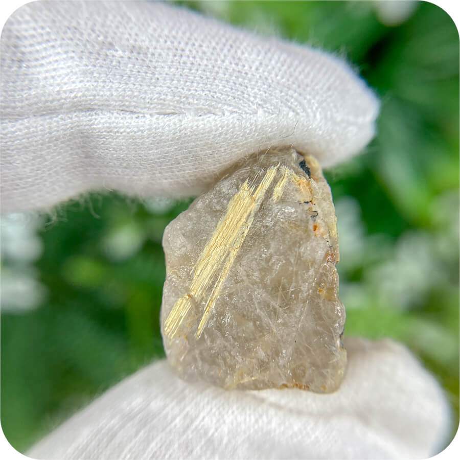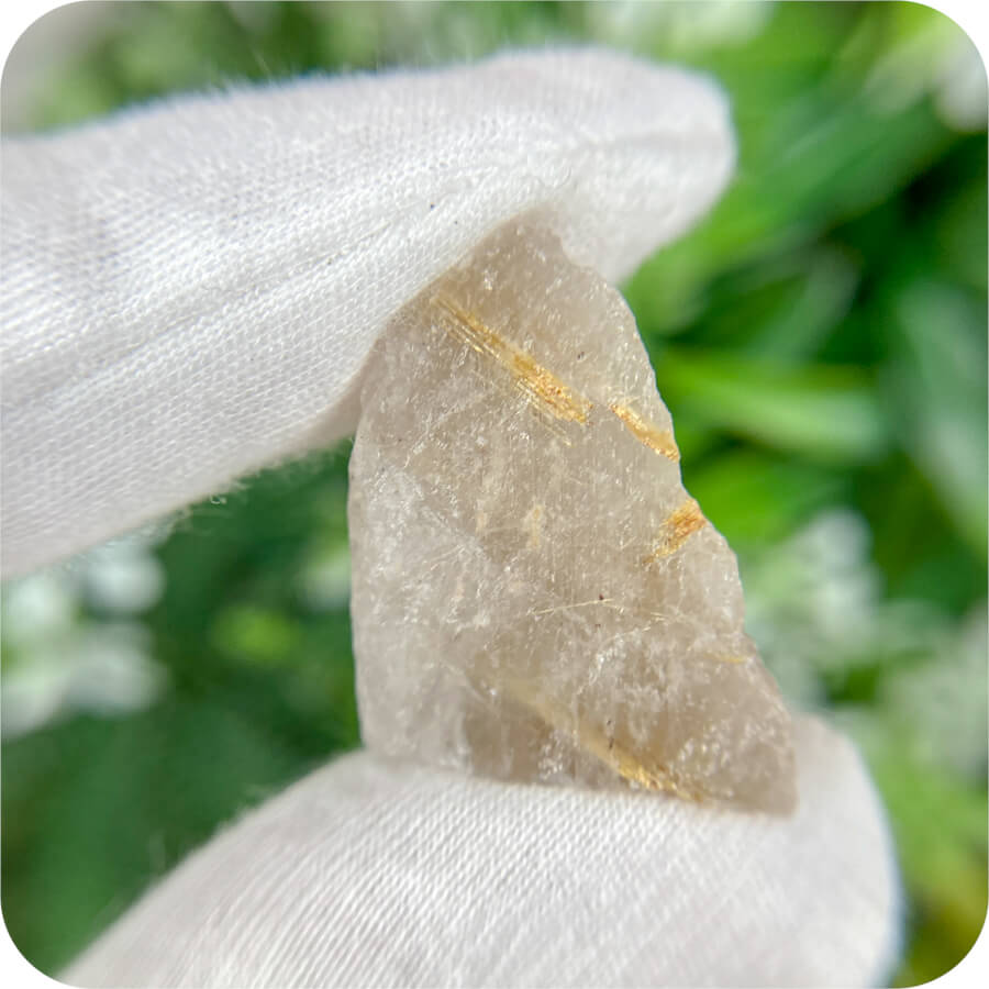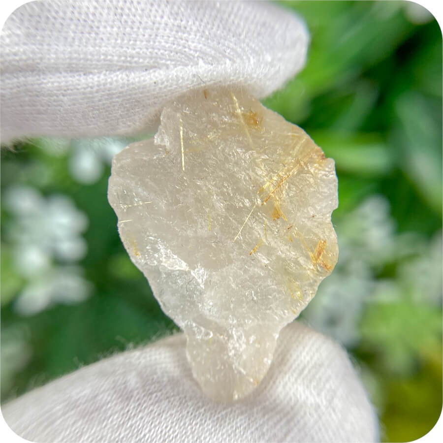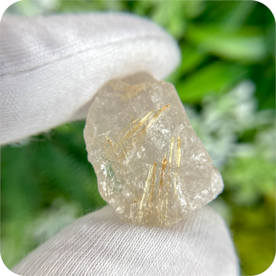 Firele fine ale pietrei sunt alcătuite dintr-un mineral auriu cunoscut sub numele de rutil, care conferă o vibrație eterică ce încurajează armonizarea cu divinul și cu multidimensionalitatea ființei.