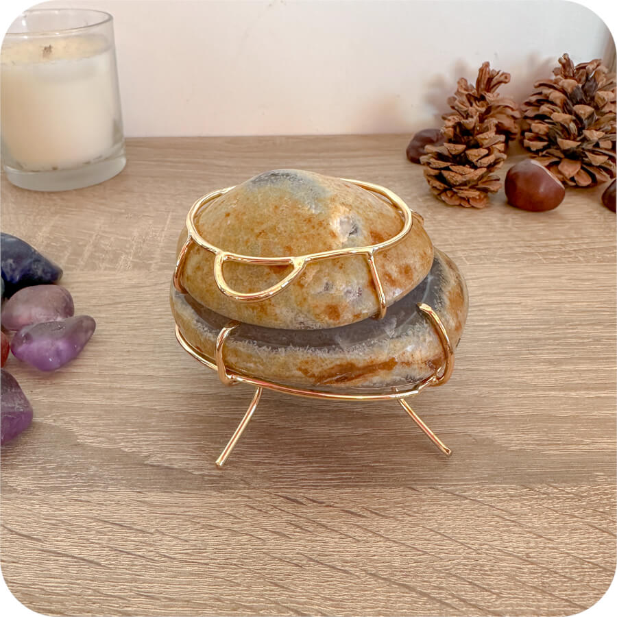 Această cutie rafinată nu este doar practică, ci și o operă de artă unică. Realizată din agat natural, atrage atenția prin textura și nuanțele sale delicate de culoare. Agatul este cunoscut ca piatră a stabilității și protecției, fiind ideal pentru păstrarea comorilor tale prețioase.