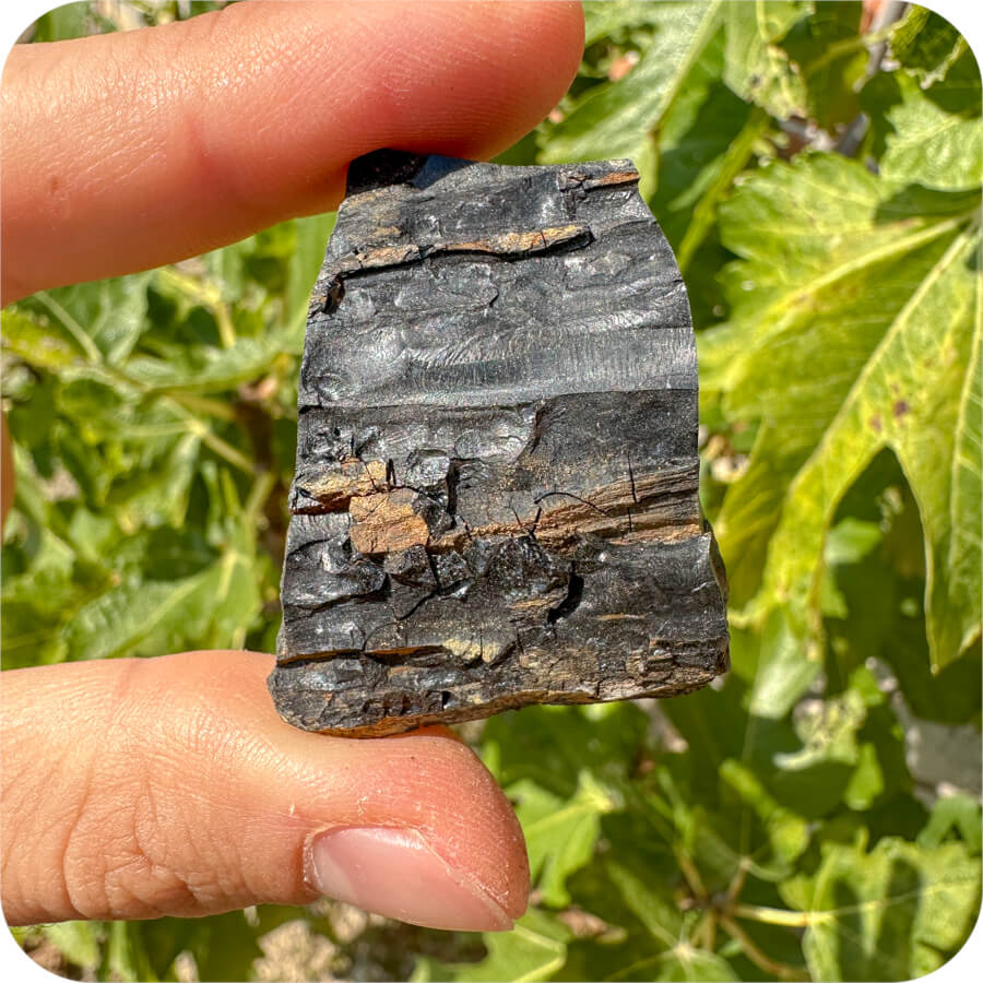 Această piatră este un tip de lemn fosilizat, format pe parcursul a milioane de ani prin comprimarea și solidificarea copacilor străvechi. Este cunoscută pentru luciul său negru strălucitor, care a făcut-o populară în realizarea bijuteriilor încă din perioada romană.