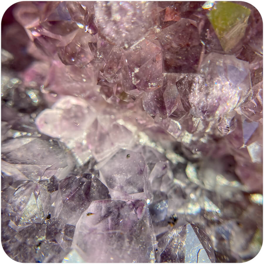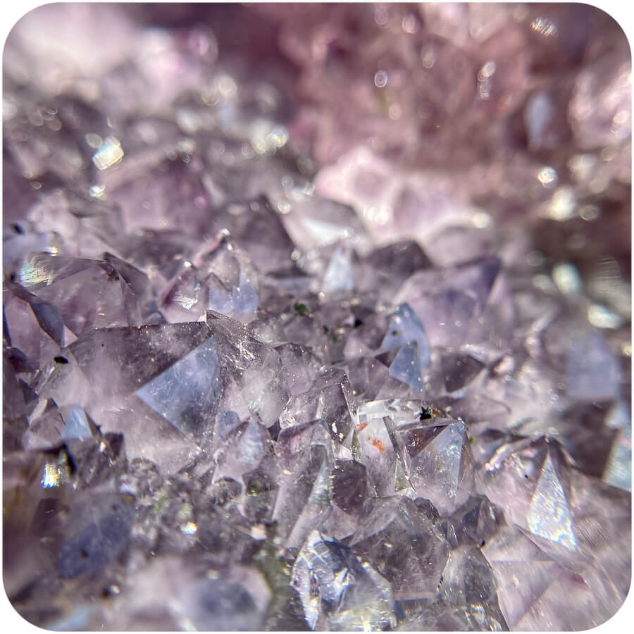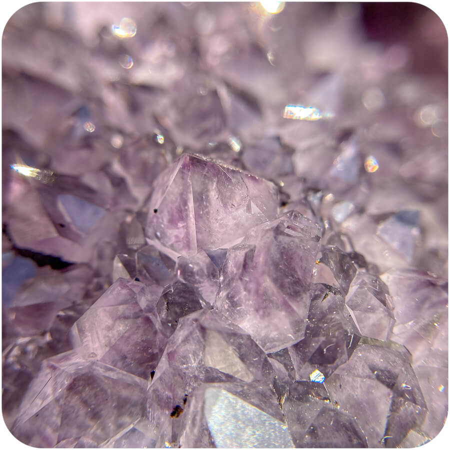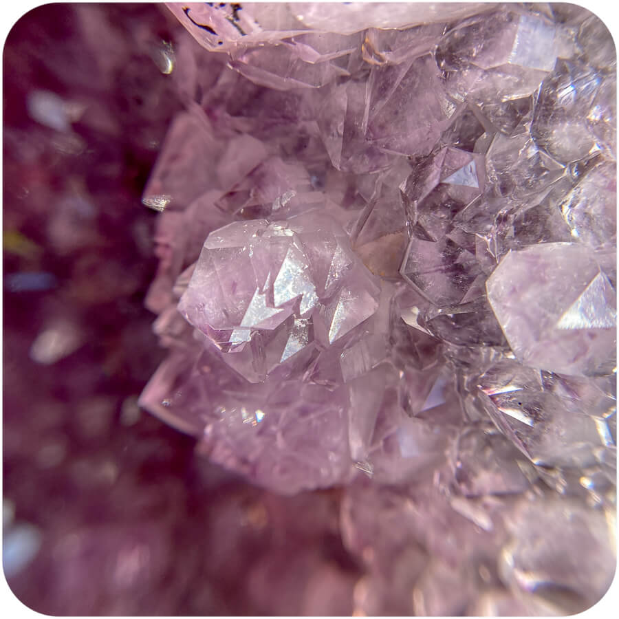 Geoda de ametist este o piatră goală cu cristale de ametist pe pereții interiori. Suprafața interioară se numește druză, care este un cuvânt folosit pentru a descrie un strat natural de cristale format pe corpul unui mineral. 💎