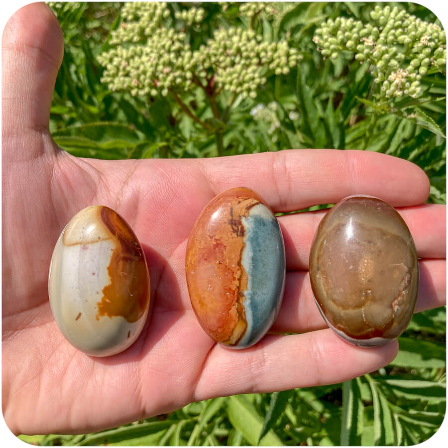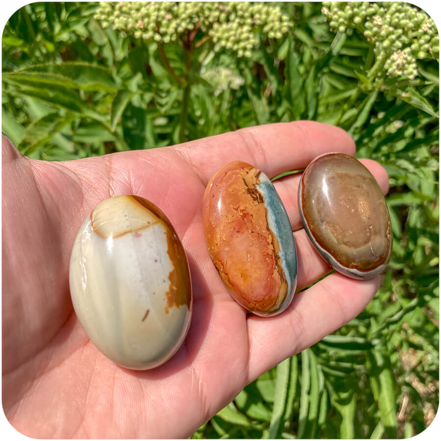 Pietrele pentru palmă sunt concepute pentru a se potrivi în palma mâinii și au o formă tactilă încântătoare. Ele pot fi folosite în multe moduri și sunt suficient de frumoase pentru a fi expuse în casă.