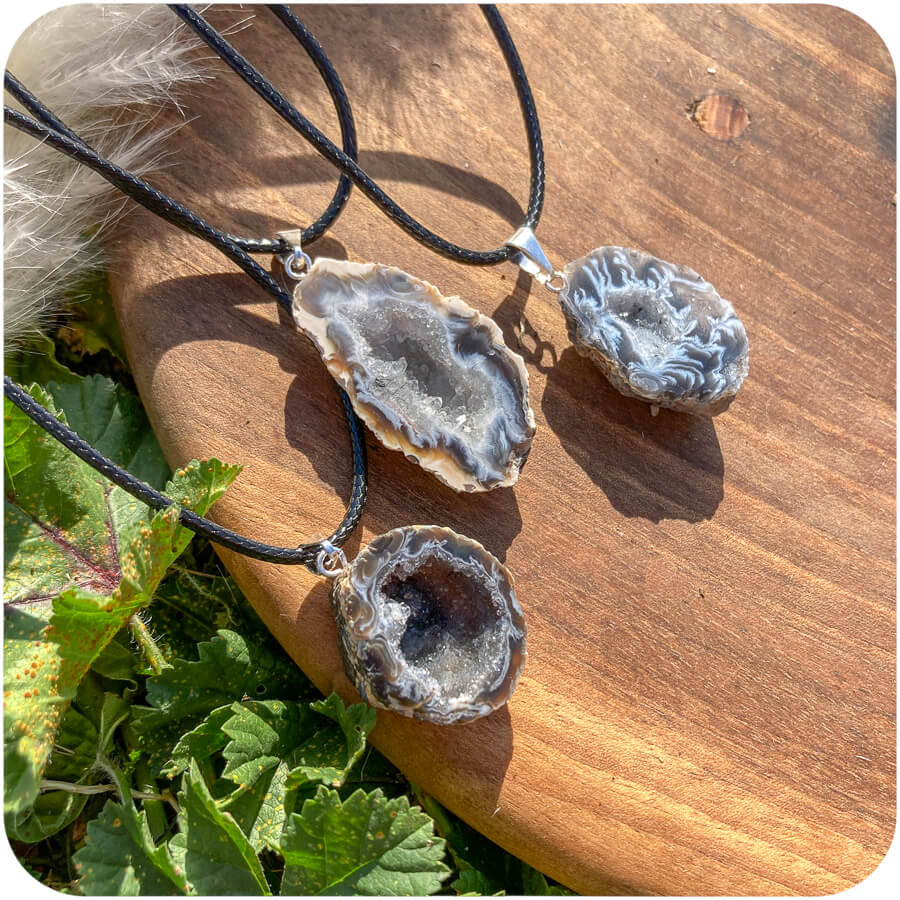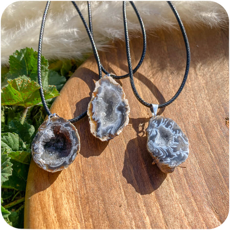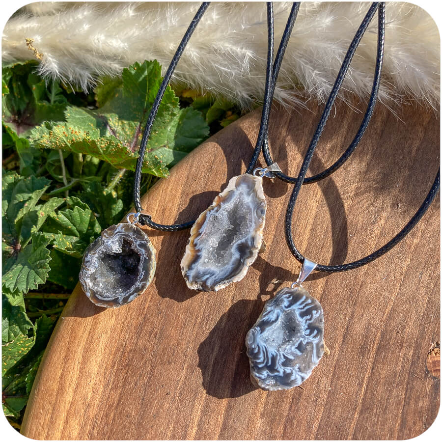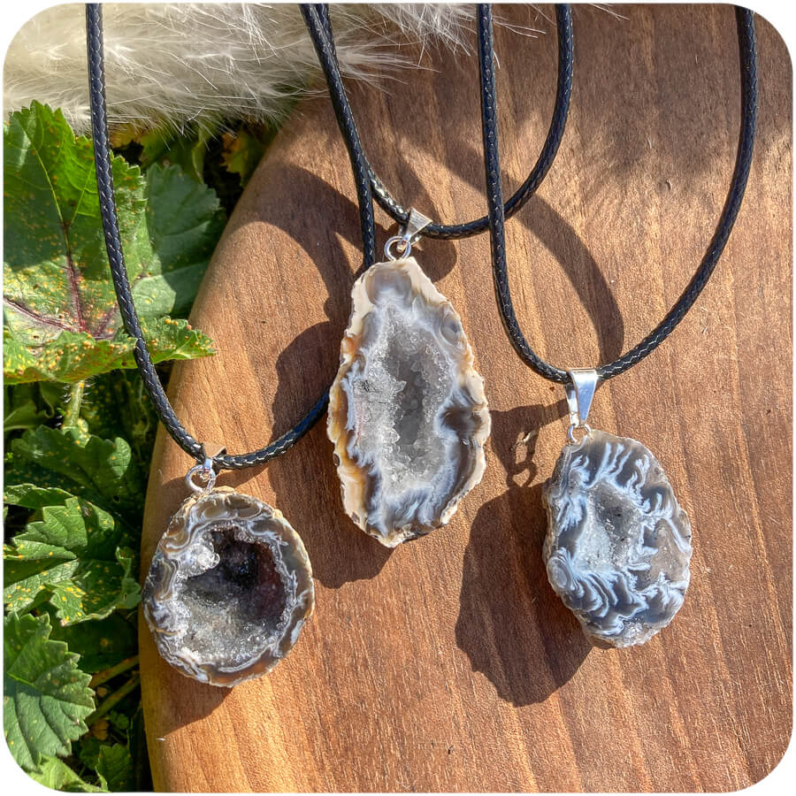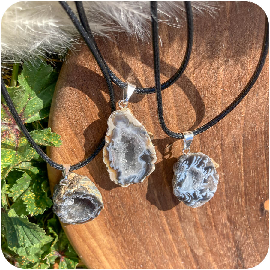 Pandantiv cu Agat Geodă Negru pentru Echilibru Interior