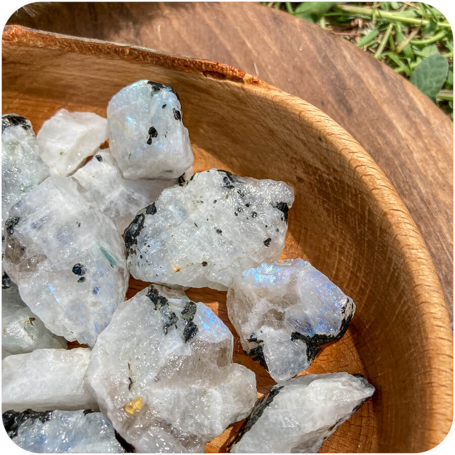 Piatra Lunii, un cristal al chakrei coroanei, a fost asociată de mult timp cu dragostea, fertilitatea, intuiția, magia, protecția, speranța și puritatea spirituală. 🔮