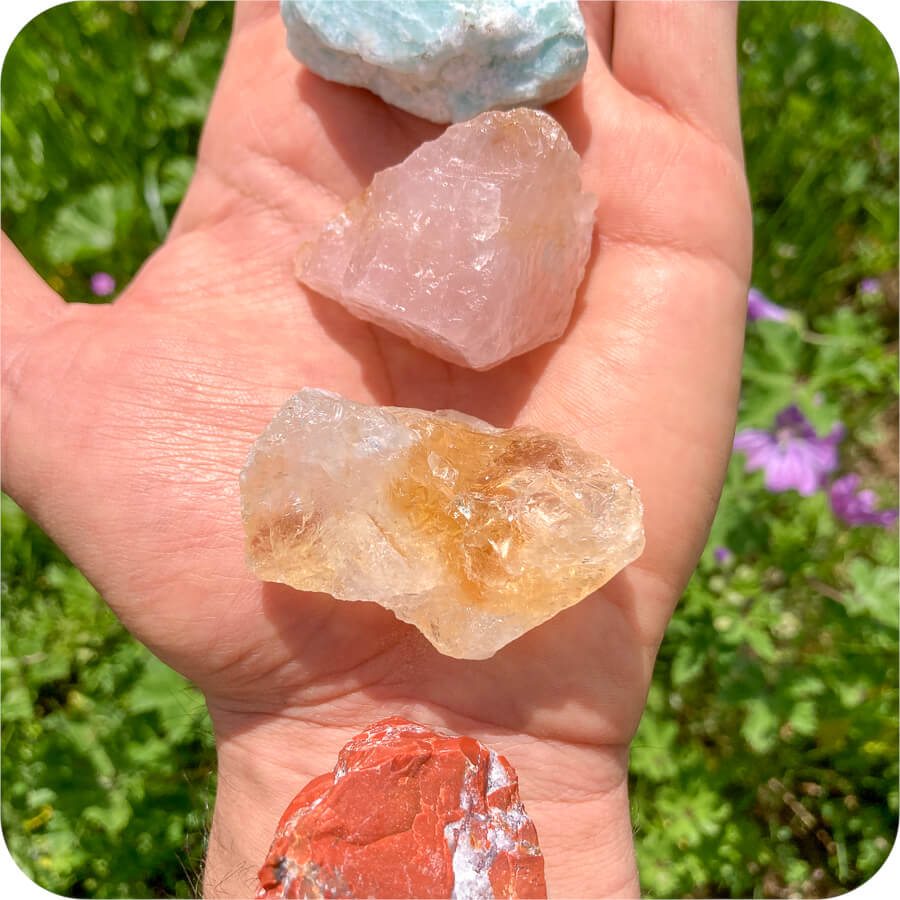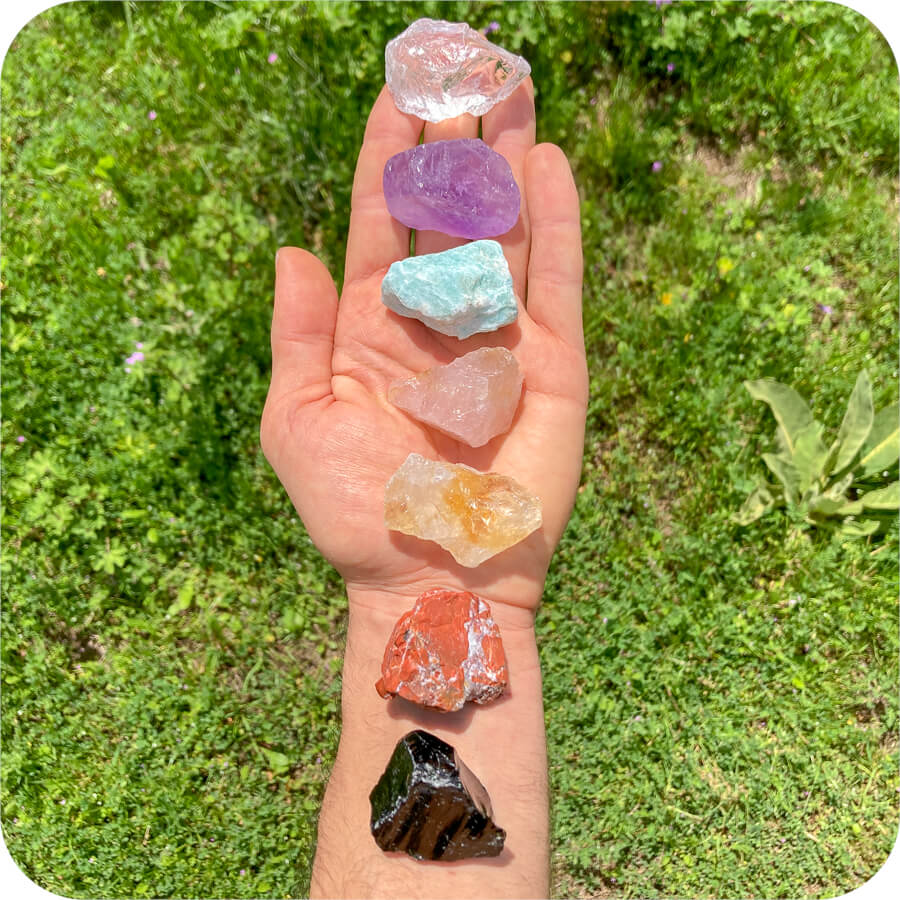 Vibrațiile acestor șapte pietre sunt concepute pentru a rezona cu fiecare dintre cele șapte chakre și pot dizolva blocajele energetice și restabili echilibrul.