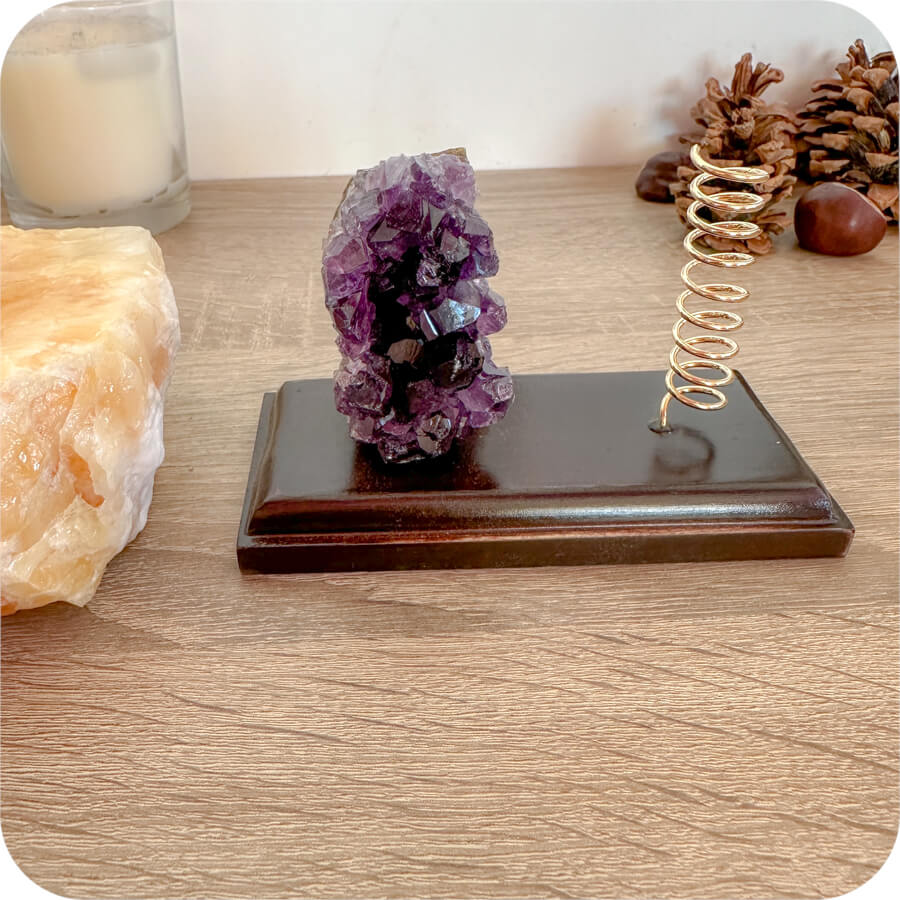 ✨ Suport pentru stilouri cu druse de ametist – o combinație între frumusețe naturală și caracter practic.