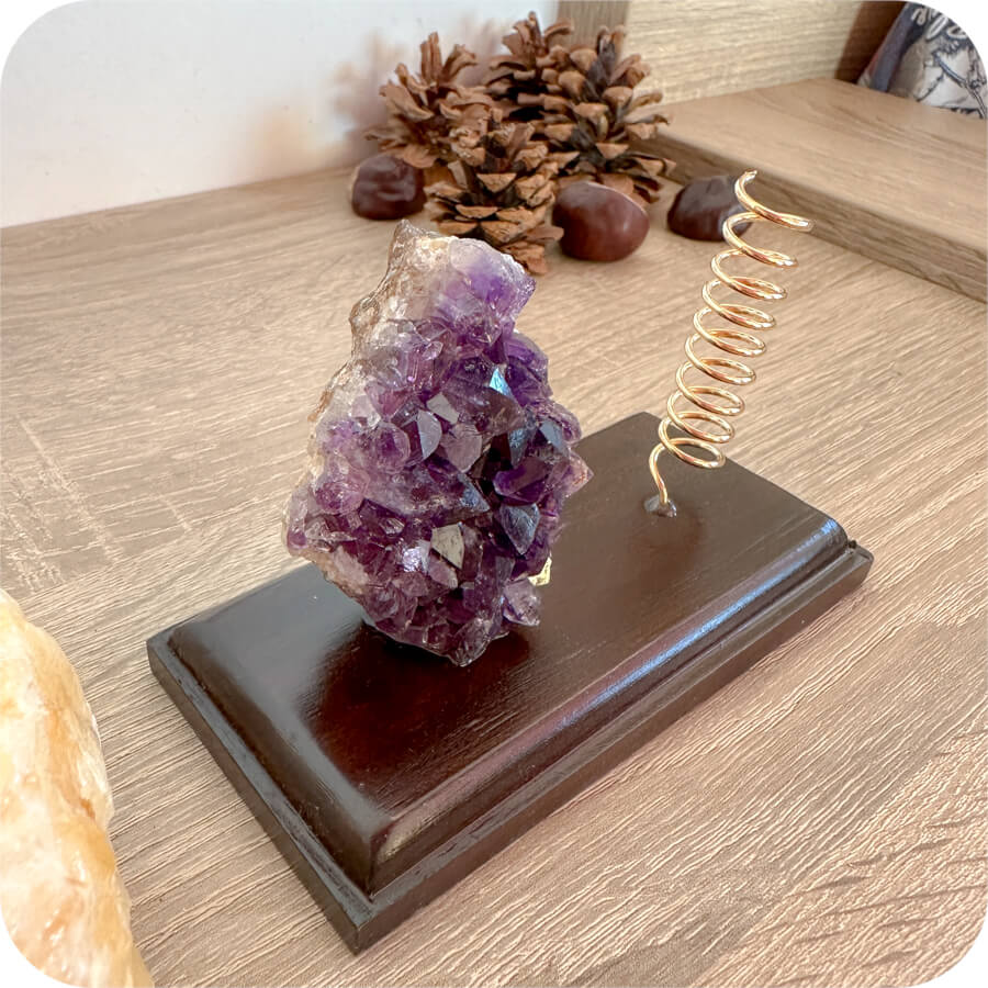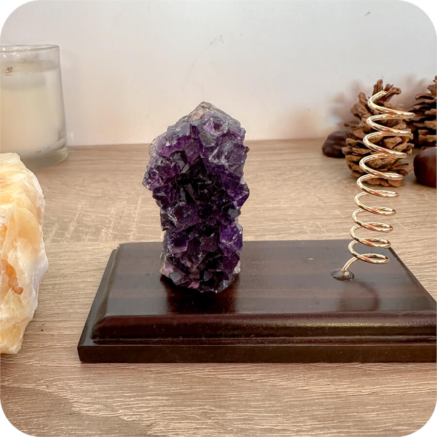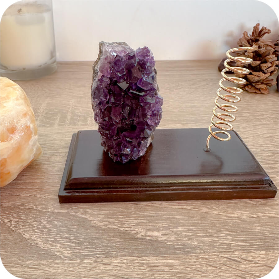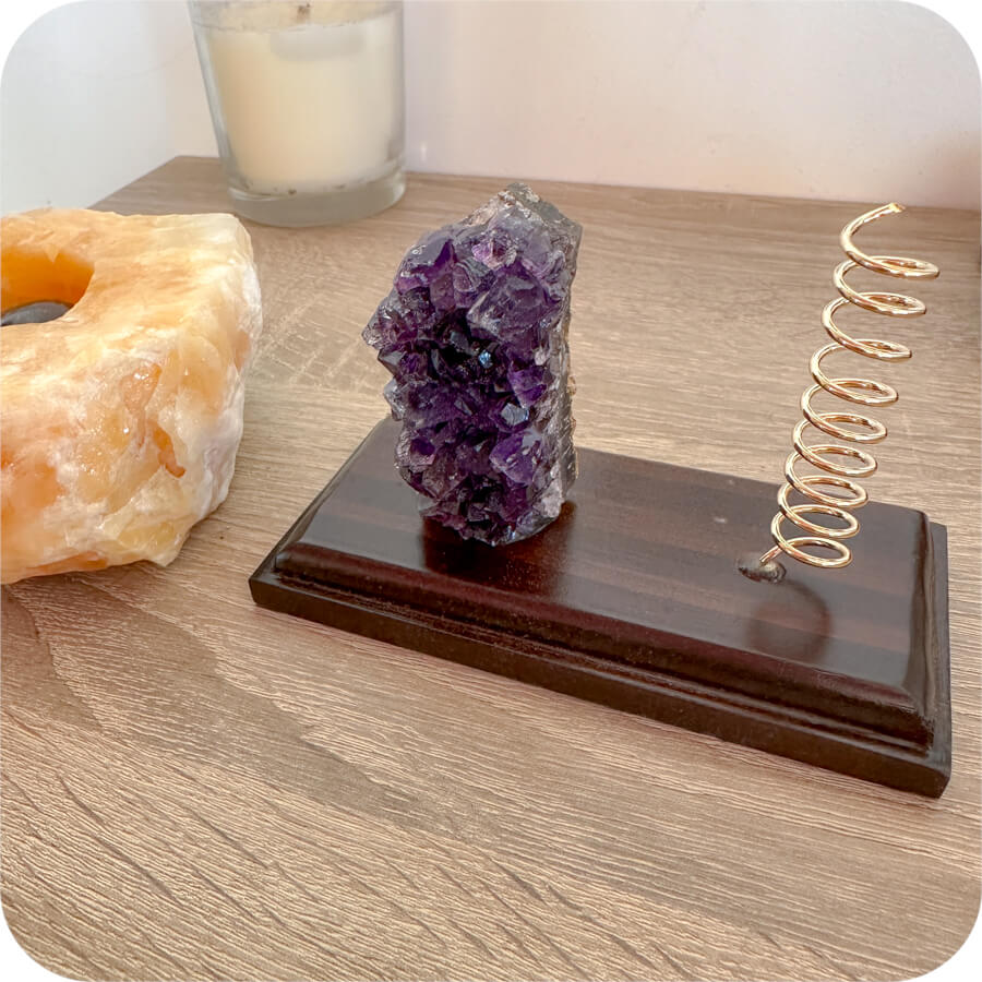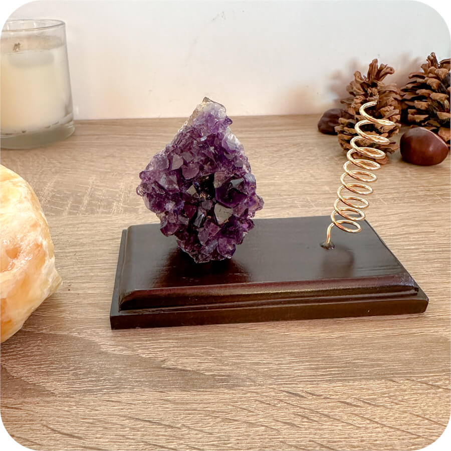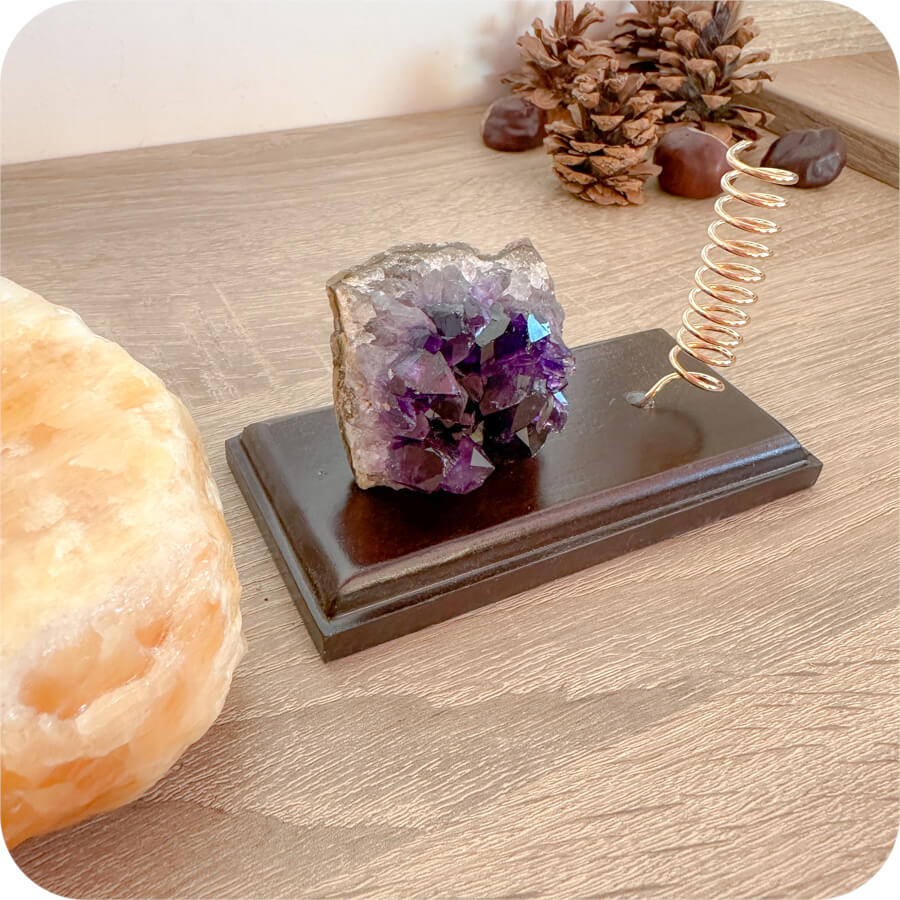Ametistul este o piatră cunoscută pentru energia sa de echilibru și armonie – ideală pentru spațiul dvs.